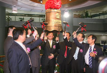 5月20日,眾嘉賓和董事長朱建民共同敲響奧克股份上市的鐘聲。